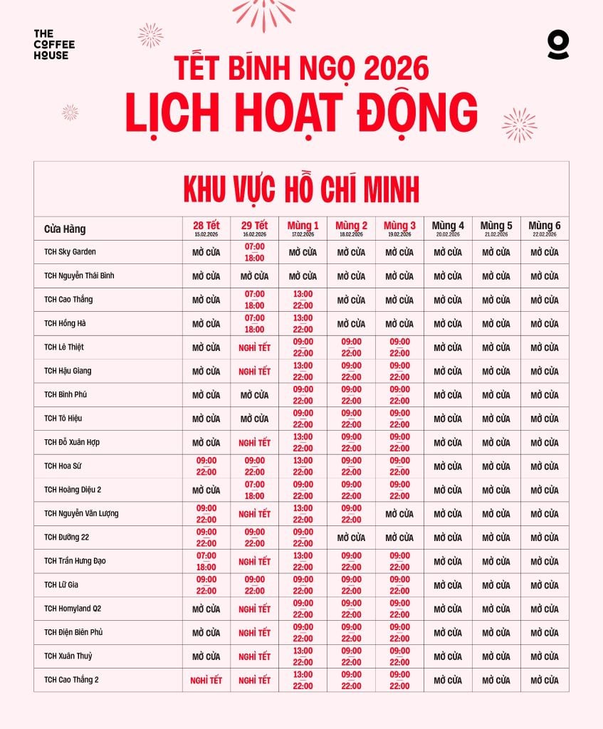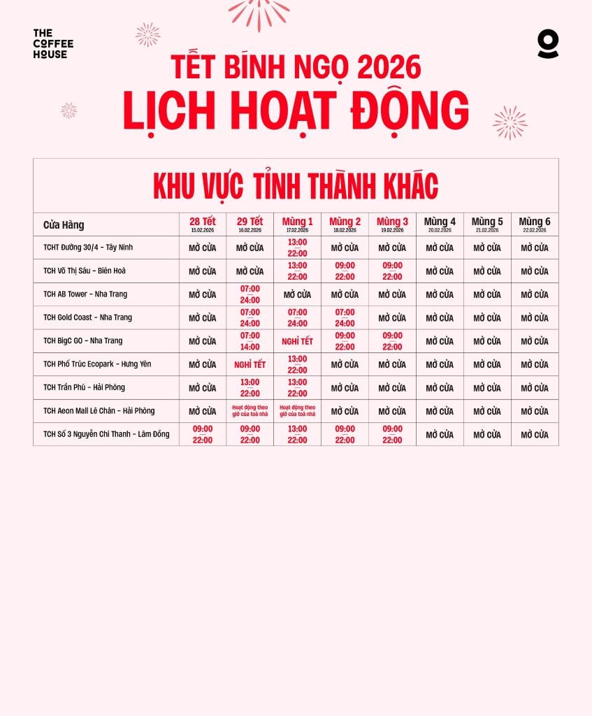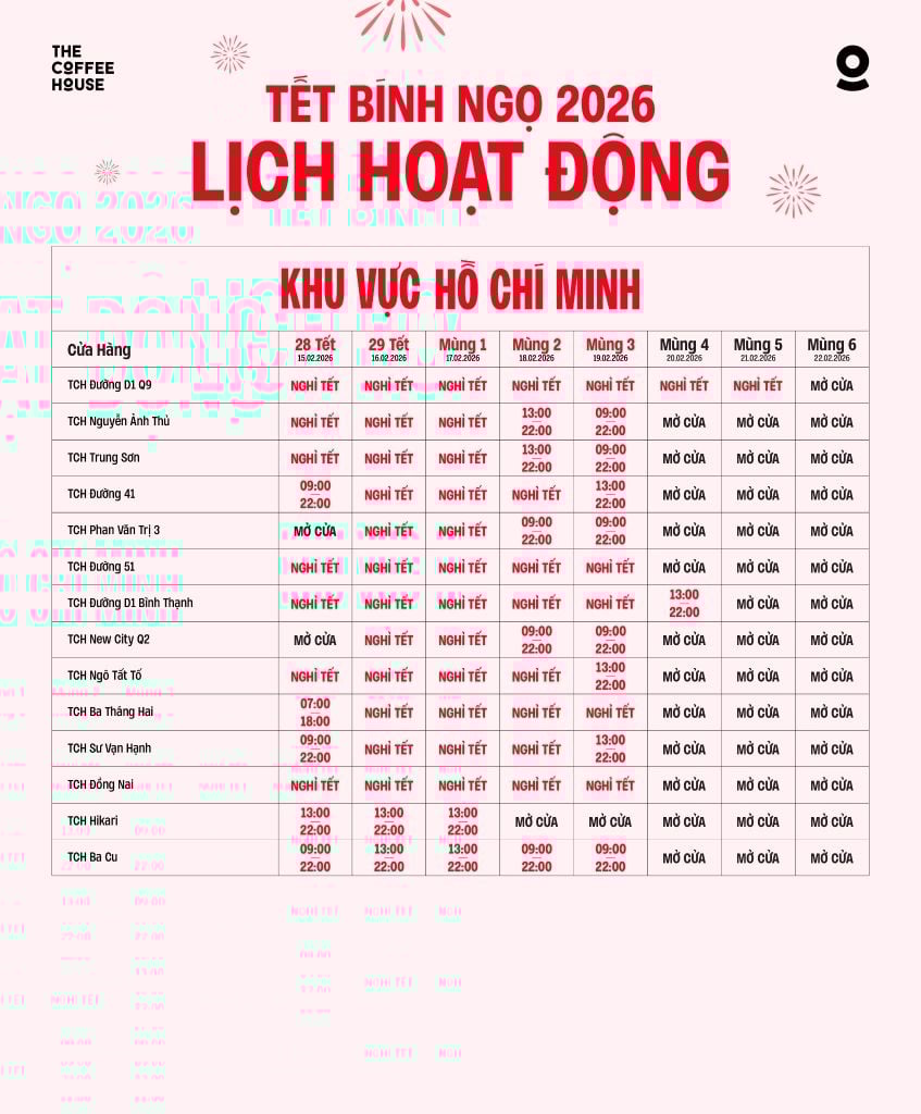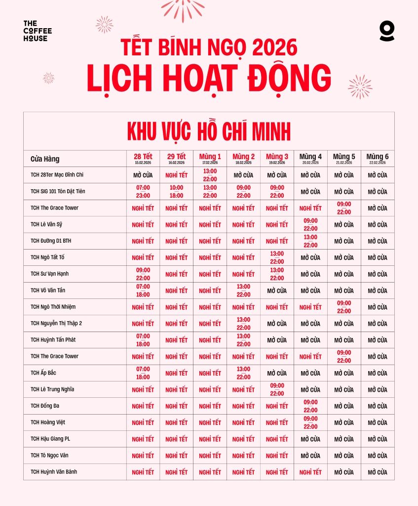 The Coffee House – Thông báo lịch hoạt động Tết Nguyên Đán 2026