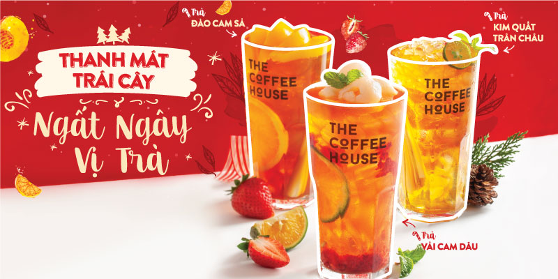 Năm nay, The Coffee House mang lại sự đột phá trong hương vị và cách pha chế, bằng việc giới thiệu dòng Trà Trái Cây "Thanh mát trái cây - Ngất ngây vị trà" mới nhằm thỏa mãn khẩu vị ngày càng tinh tế của khách hàng. Ngoài ra, chúng tôi muốn đem lại một trải nghiệm thưởng thức trà chưa từng có với niềm cảm hứng bắt nguồn từ sự yêu thích trà và những hương vị hiện đại tại Việt Nam như: đào, dâu, cam, vải và kim quất.